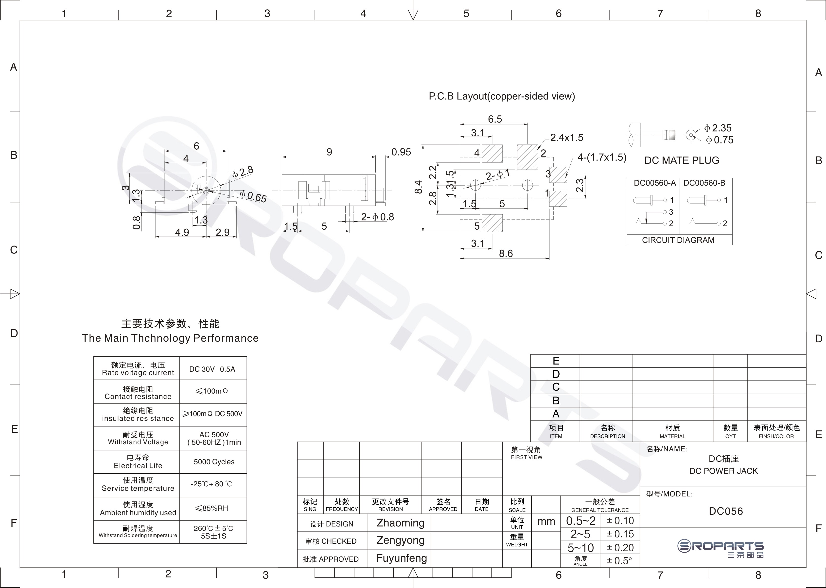1. 额定负荷: DC 30V 0.5A 2. 接触电阻: ≤100mΩ
